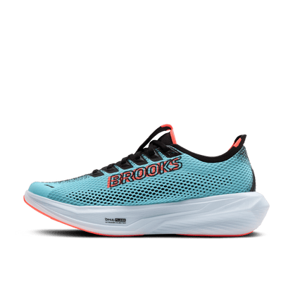 The Brooks Hyperion 3 marathon training shoes for men are perfect for long-distance runs like 5Ks, 10Ks, or full marathons, delivering lightweight, punchy performance for versatile and fast-paced training. Featuring a uniquely engineered outsole and nitrogen-infused DNA FLASH v2 cushioning, these shoes provide ultra-responsive, springy support with a soft-yet-firm feel that absorbs impact and reduces joint stress. The result is a smooth, balanced ride with the ideal mix of comfort and performance. A breathable, lightweight upper ensures a secure midfoot lockdown, keeping your stride distraction-free and every run cushioned, comfortable, and efficient.Â