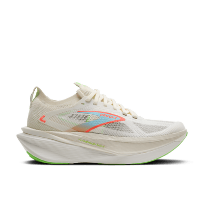 The Brooks Hyperion Max 3 is your ultimate partner for marathons and long-distance training, designed to optimise performance so you can run fast on race day. This women's running shoe combines Brooks’ lightest, softest, and most energy-returning foam ever - DNA GOLD 100% PEBA cushioning with a high-stack of DNA FLASH v2 and SpeedVault plate. This powerful trio delivers exceptional responsiveness, protection and propulsion, ensuring you train fast, recover efficiently and ultimately dominate on race day.