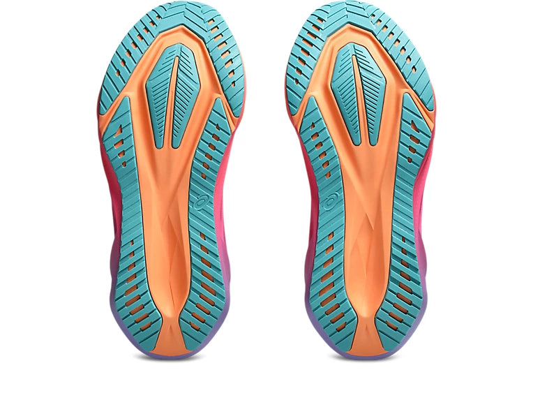 The trampoline outsole geometry is updated, for a more energetic toe off and improved grip.