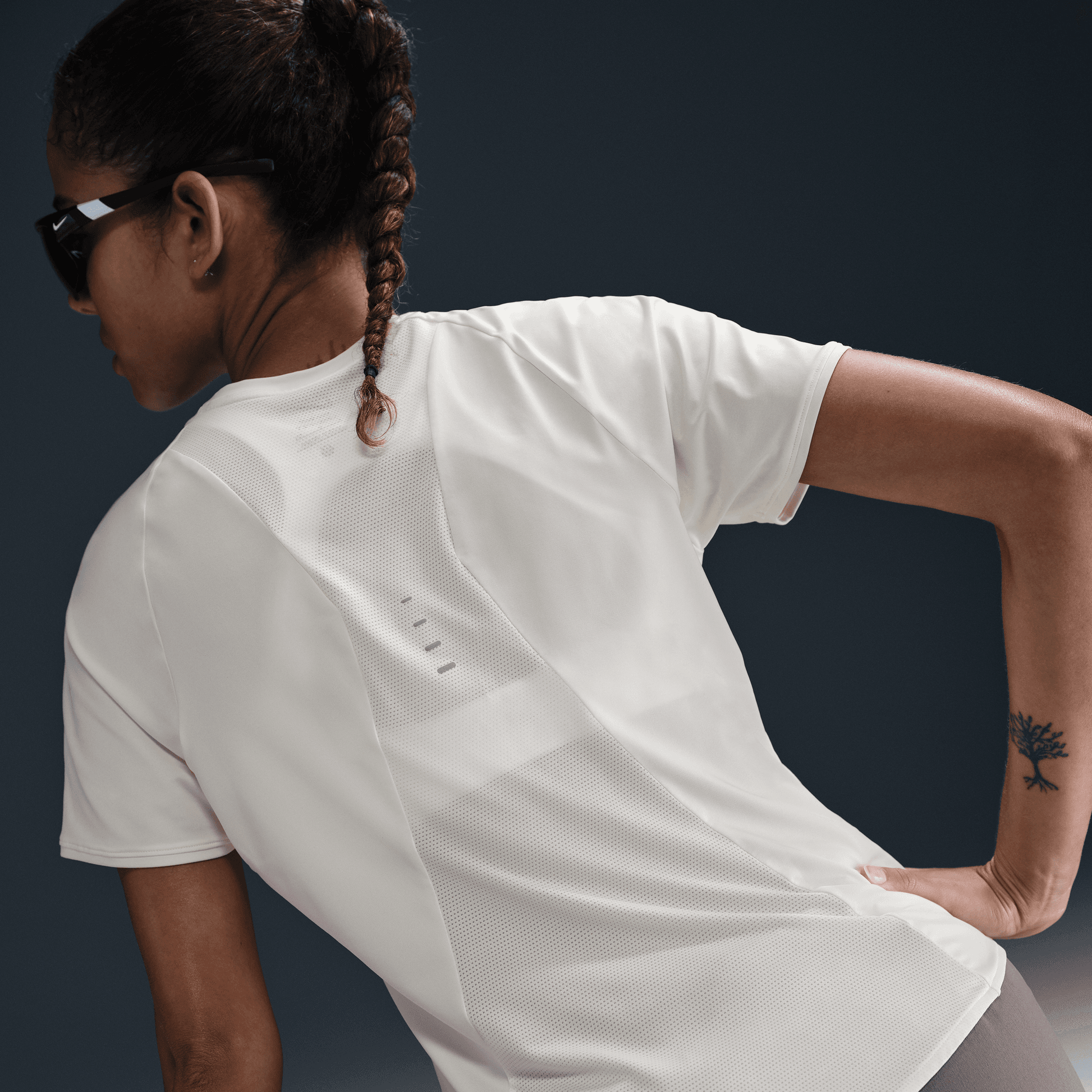Using insights from runners like you, we prioritized functionality to refresh our Swift essentials. This lightweight top has been designed to help reduce chafing and improve breathability. It's soft and sweat-wicking so you can focus on your miles, and nothing else. Unhindered Movement Modified raglan sleeves with the optimal length are designed to help reduce underarm chafing and allow for a wider range of motion. Stay Dry Nike Dri-FIT technology moves sweat away from your skin for quicker evaporation, helping you stay dry and comfortable. It combines with a large mesh panel on the back that helps moisture escape. Functional Fit The top is tapered around the waist so that layering with other pieces is easier. Plus, a curved hem helps keep you covered through your stride. More Details