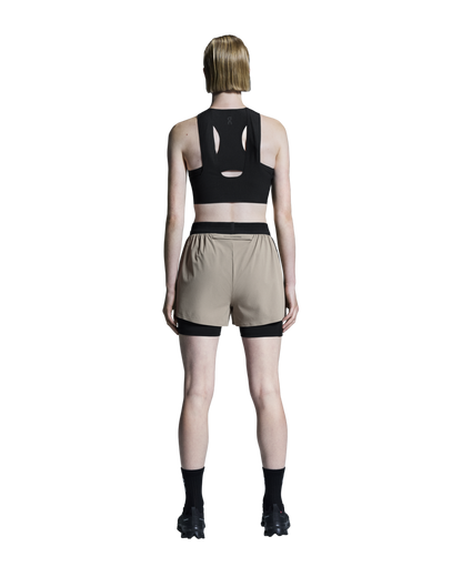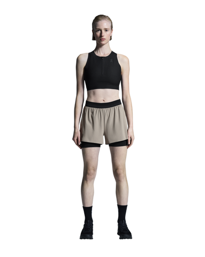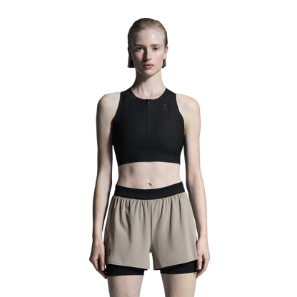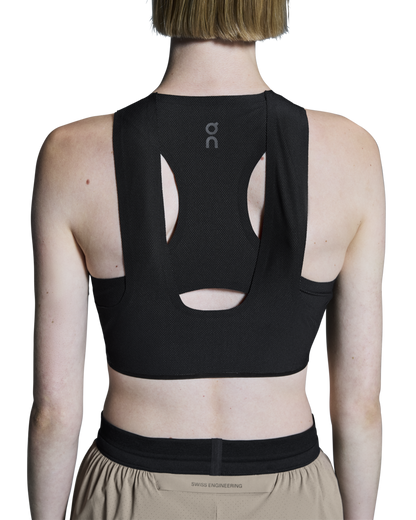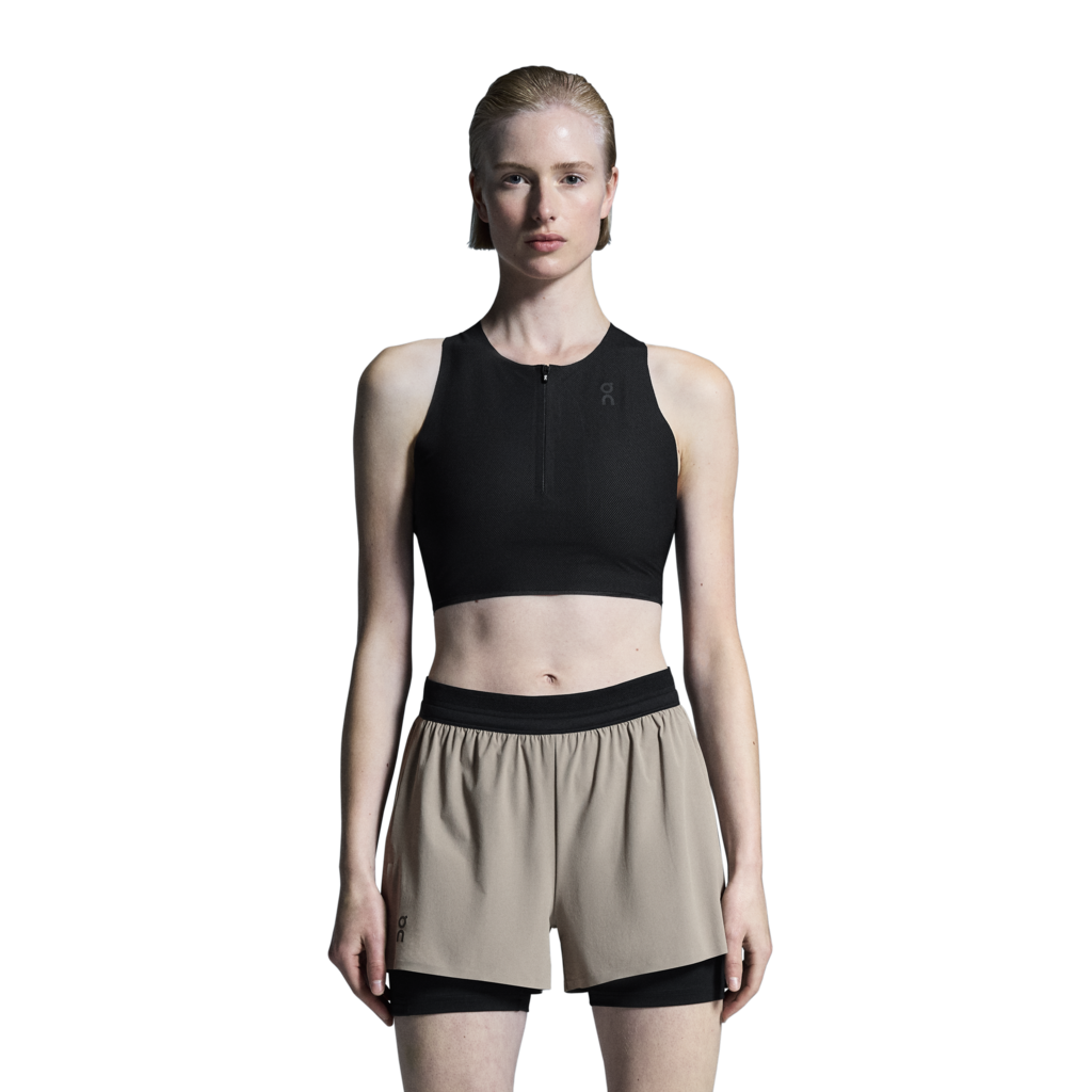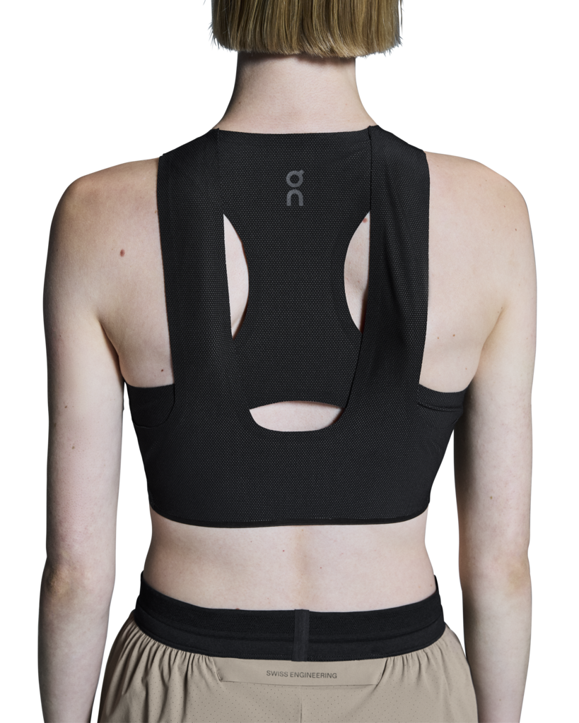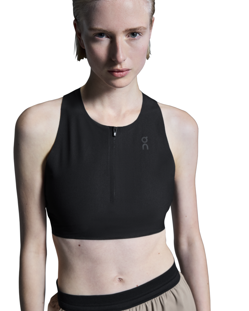 Breathable and soft crop top for race day, with a hybrid racerback construction for a stable and secure fit.