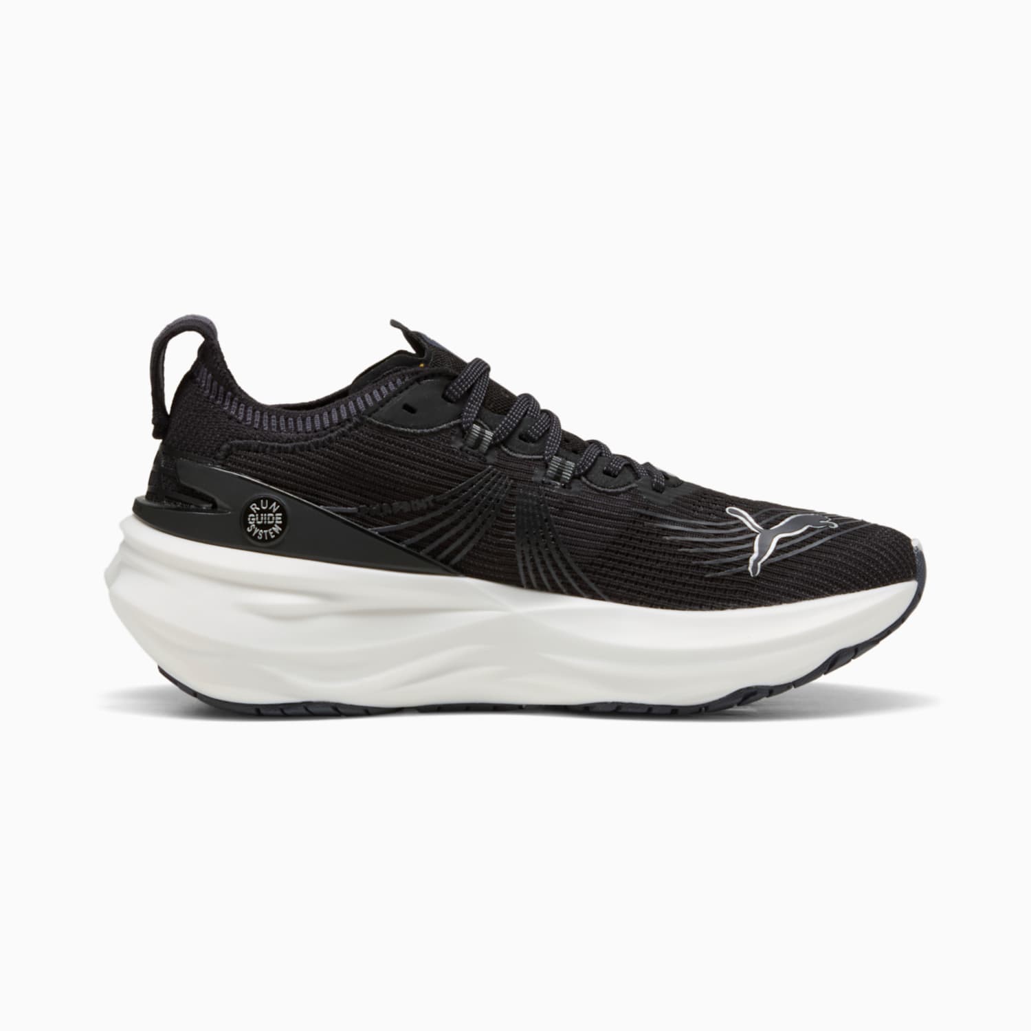 Experience unparalleled support with ForeverRun NITRO™ for women. Featuring NITROFOAM™ cushioning and RUNGUIDE SYSTEM, the PUMAGRIP rubber outsole ensures multi-surface traction, while the engineered mesh upper offers breathability and durability. Enjoy a smooth, stable ride with every stride.